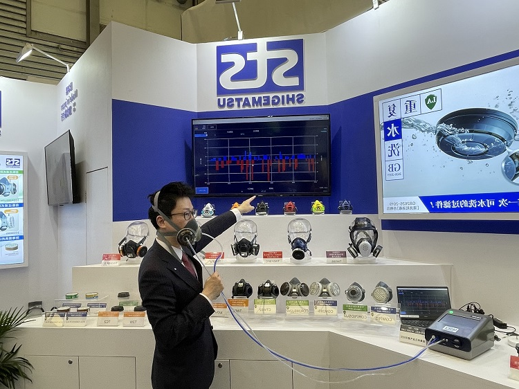 本次展会专门展出了由重松制作所研发的面罩内压及气密性检测仪,此设备可以同时检查佩戴者口罩的呼吸压力和气密性,以数字的方式将面罩呼吸阻力和气密性直观的呈现在大家面前,该设备不仅可以检测重松品牌口罩,还可检测市场上其他所有品牌的口罩,为企业生产安全提供服务和保障。