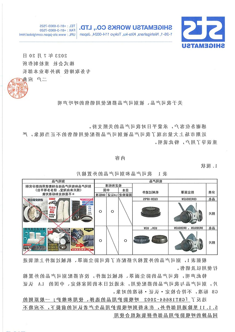 重松产品不宜添加其他品牌外置棉片的呼吁声明